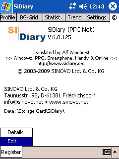 Should you have purchased the subscription version of SiDiary, it is possible to register all programme versions (PC, Pocket PC, Windows Smartphone, Android and Java-based cell phone) to use SiDiary for 12 months without encountering any adware restrictions or commercial pop-ups.